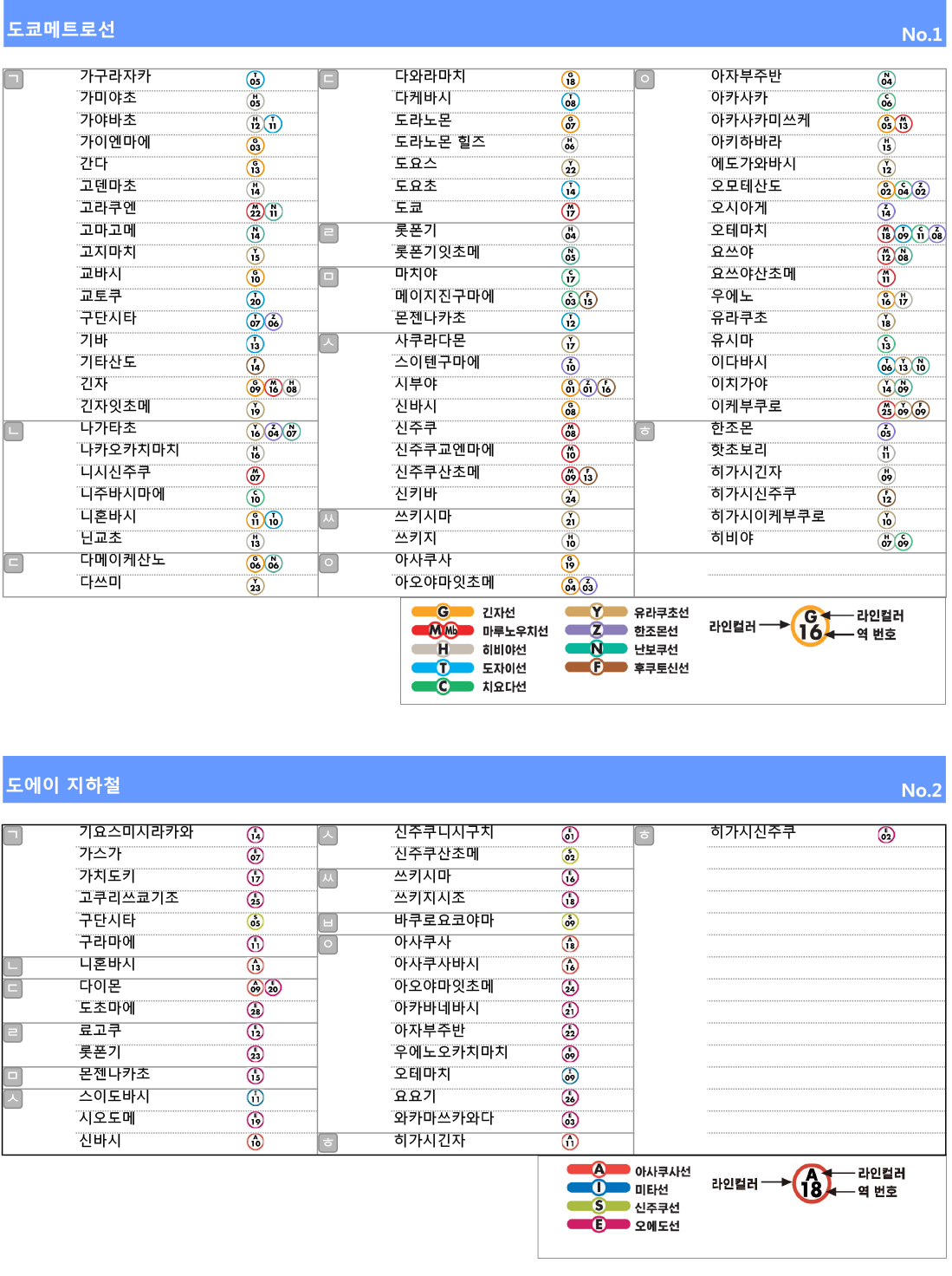 총 천연의 라인컬러와 대표 알파벳, 역번호를 눈에 익혀두면 금방 찾을 수 있다.