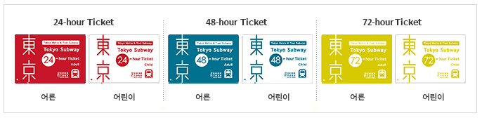 디자인 바뀜 / 72시간 흰색 바탕에 검정글씨 도쿄메트로와 도에이 지하철을 구매 시간 내에 무제한으로 이용할 수 있는 티켓이다. 많이들 '도쿄메트로카드'라고 부른다. 이 티켓은 JR 라인은 이용할 수 없으니 주의해야 한다. 여러 노선이 몰려 있는 역의 경우 개찰구를 잘못 나가 추가 요금을 지불한 사례를 많이 보았는데(사실 이 부분 때문에 티켓 구매를 망설였었다), 막상 사용해 보니 JR과 도쿄메트로는 표시가 명확한 편이라 주의만 한다면 문제가 되지 않는다.