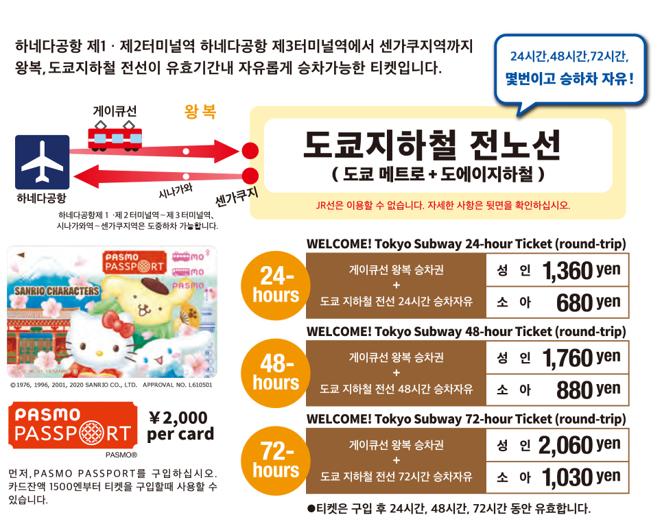 투어리스트를 위한 게이큐 인포메이션에서 공항 왕복 및 72시간 도쿄메트로 티켓 할인 판매함
